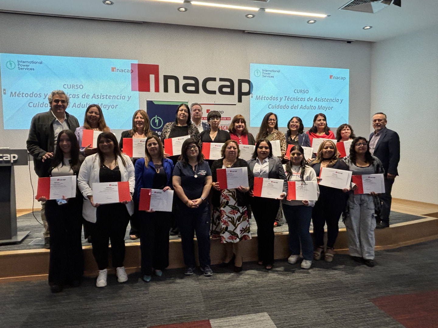 A certification ceremony was held for the Elderly Care Training Course for women entrepreneurs, as part of an agreement between the INACAP Professional Institute in Copiapó, Central Cardones of International Power Services, and the Health Department of the Municipality of Copiapó.